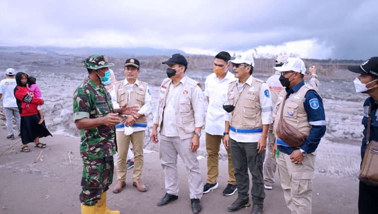 TIMES Mahakam/Ketua Dewan Penasehat Partai Gerindra DPD Jawa Timur, Bambang Haryo Soekartono bersama DPC Partai Gerindra Surabaya, Lumajang dan Malang saat meninjau dan menyerahkan bantuan Bencana Erupsi Gunung Semeru.Foto Partai Gerindra Jatim