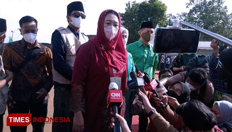 TIMES Mahakam/Putri Abdurrahman Wahid (Gus Dur) Yeny Wahid saat diwawancarai oleh awak media. (FOTO: Moh Ramli/TIMES Indonesia)